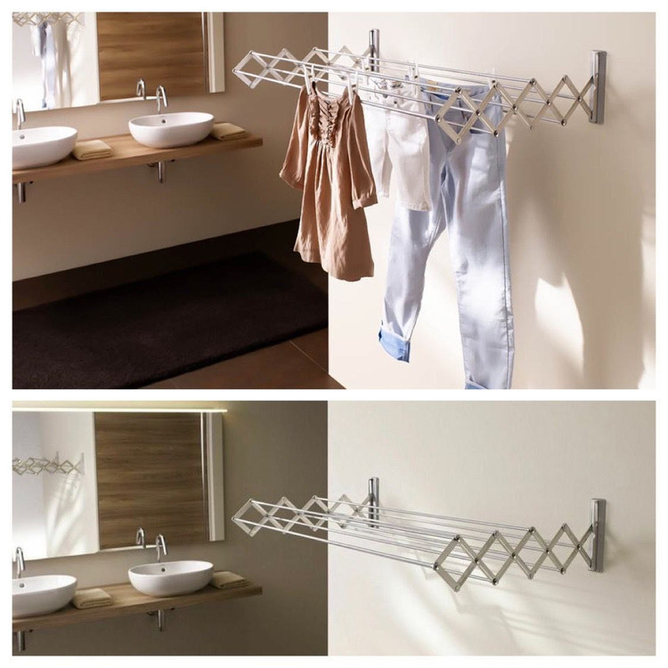 این مدل رختآویز تاشو قابلیت نصب بر روی دیوار، داخل بالکن و حمام را دارد.